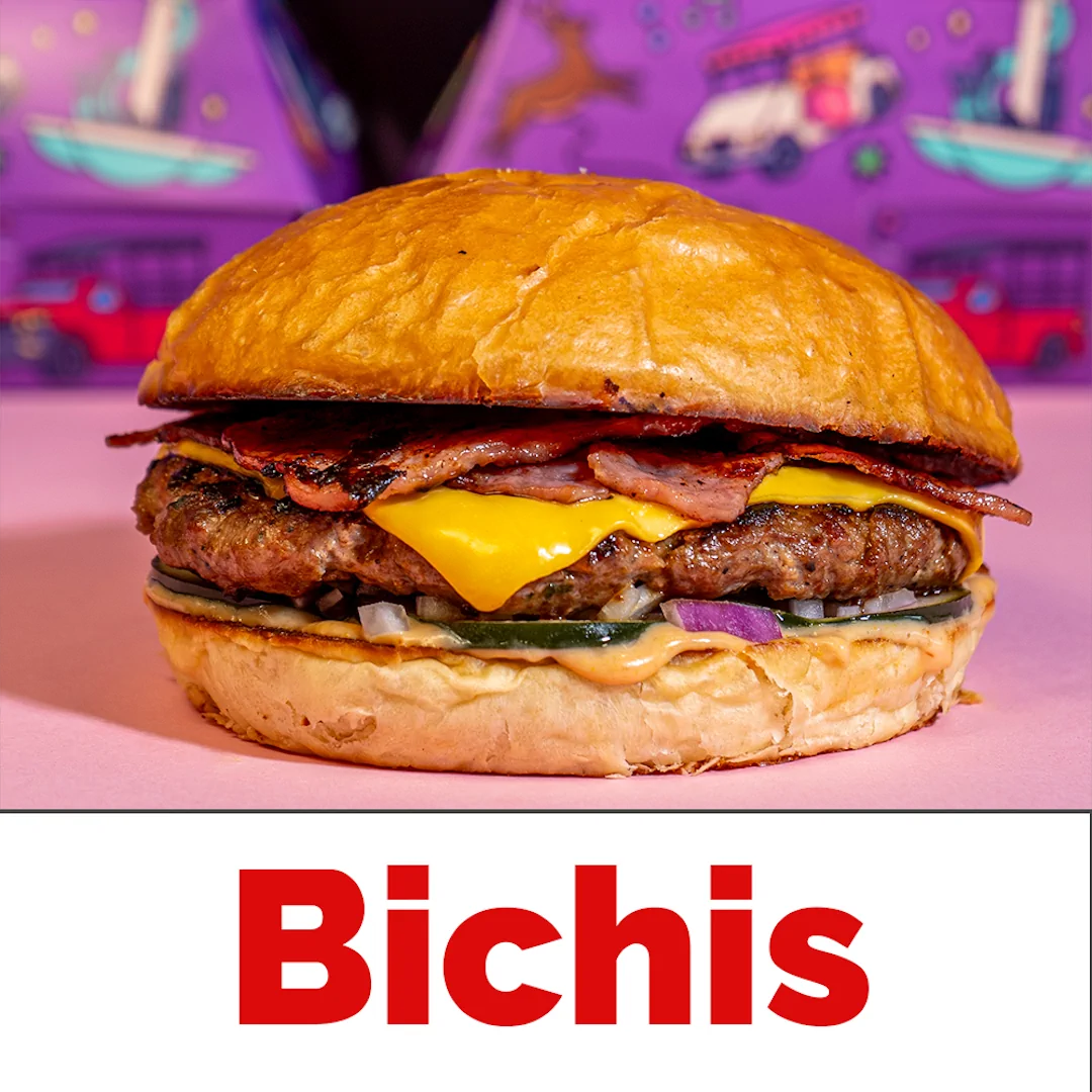 ¡Edición Especial! Jugosa carne bichi abrigada con doble porción de pastor gratinado de Taquería Los Sobrinos y piña a la plancha con tocino, verduras y pepinillos entre Pan Casero. Por tiempo limitado.